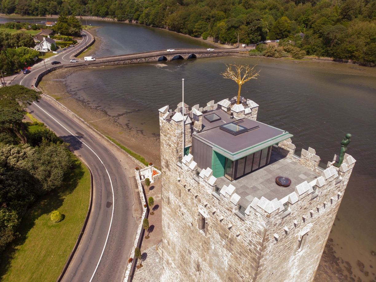 In 2016, this successful couple were looking for a restoration project on a decent scale and not a small cottage, when they came across Belvelly Tower House in Cobh Co Cork. The castle dates to the 13th Century and stands in a prominent position guarding the crossing between The Great Island of Cobh and the mainland of Ireland. The original Castle was restored by Sir Walter Raleigh in 1581 but was abandoned sometime in the C17th and fell into dereliction.